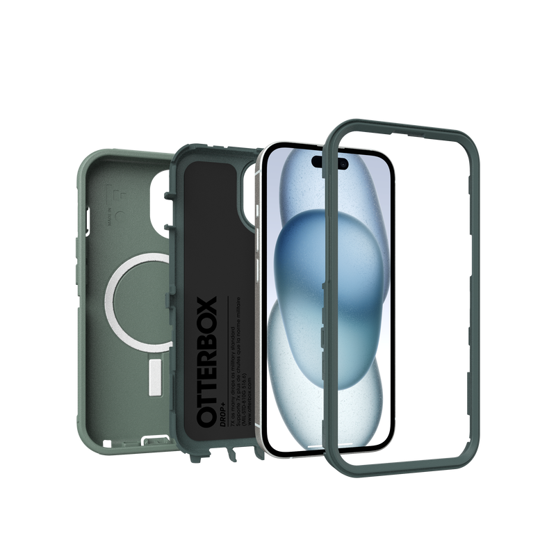 For peak protection, trust Defender Series for MagSafe, our toughest case yet. It features a tri-layer design with a silicone outer cover, rigid inner shell and memory foam backing that work together to deflect whatever damage might come your way — and deliver 7X military standard drop defense. Plus, it's equipped with corners that absorb shock, all-over texturing for greater grip, integrated MagSafe magnets and built-in anchors for connecting phone straps. When you need real defenses, you need Defender Series for MagSafe.