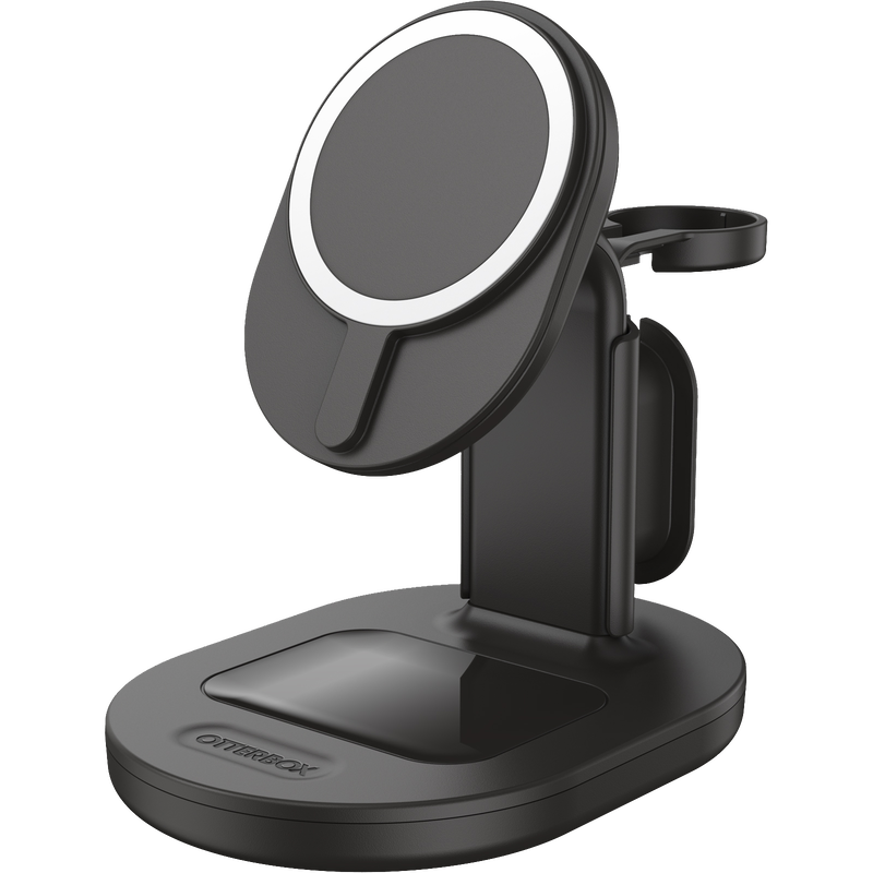 Innovative 3-in-1 Charging Station for MagSafe powers all your Apple devices in one sleek, spacesaving stand. Click your iPhone to the wireless charging stand and place your AirPods case on the base. In addition, you can set up your Apple Watch charger* on the stand to complete the one-stop charging station for all your Apple devices. Perfect for home and office.